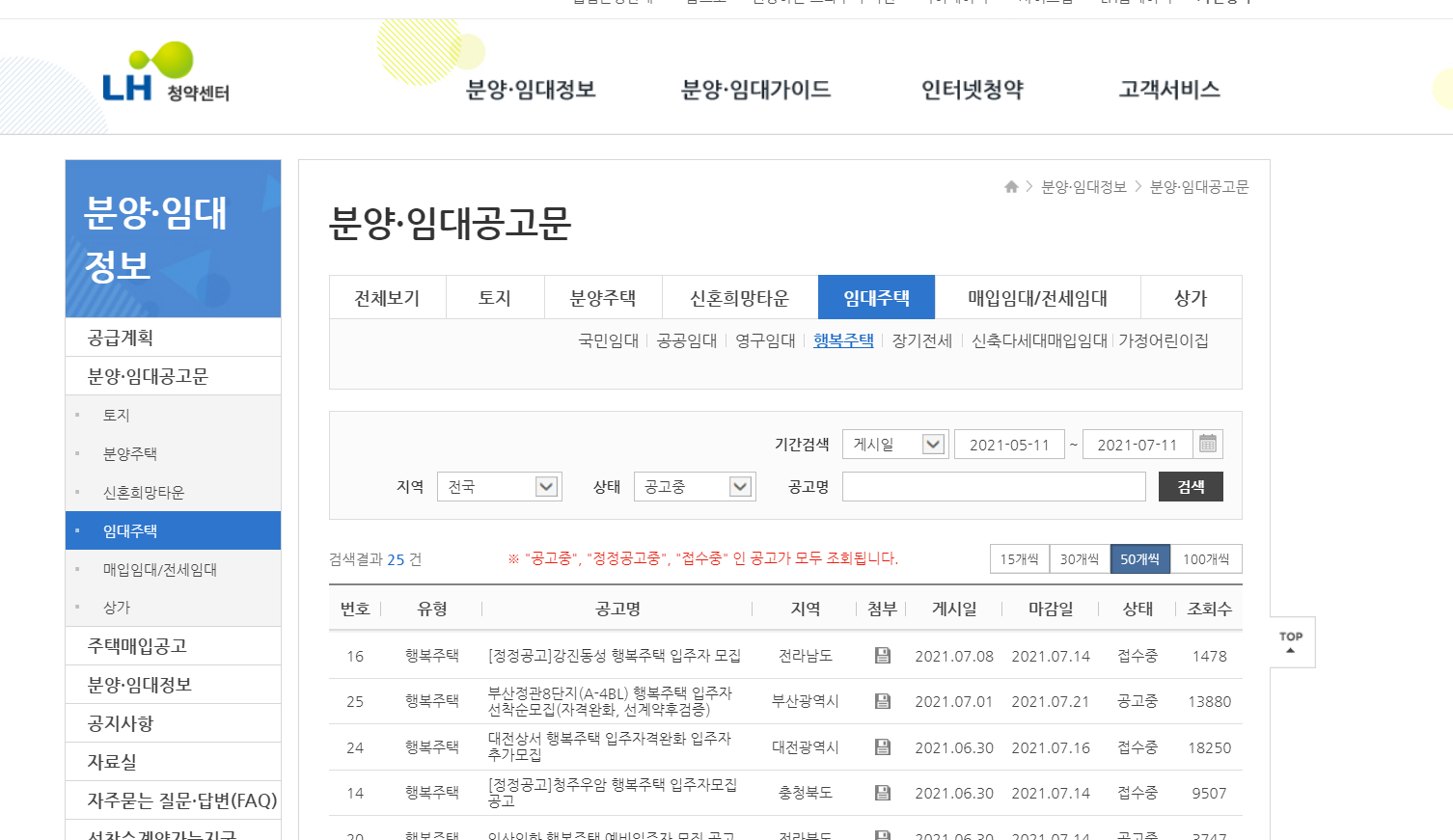 3.임대주택 -> 행복주택 클릭