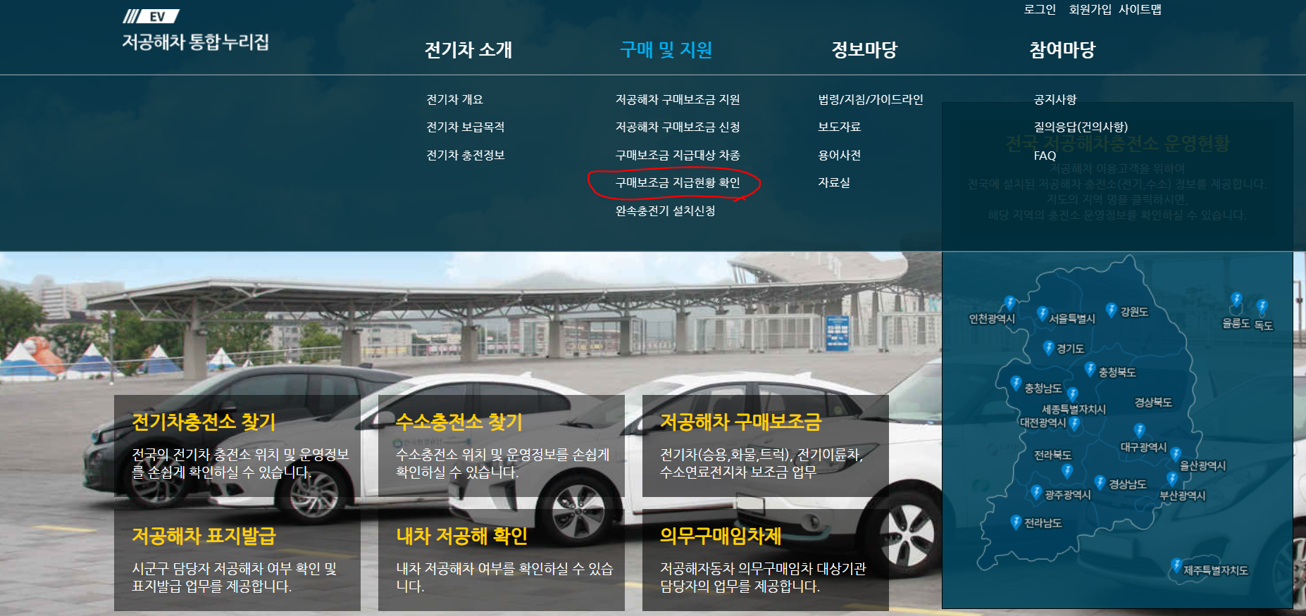 저공해차 통합누리집 홈페이지에 들어가줍니다.