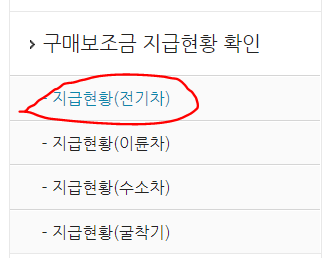 구매 및 지원 카테고리에서 '구매보조금 지급현황 확인'을 눌러줍니다.
