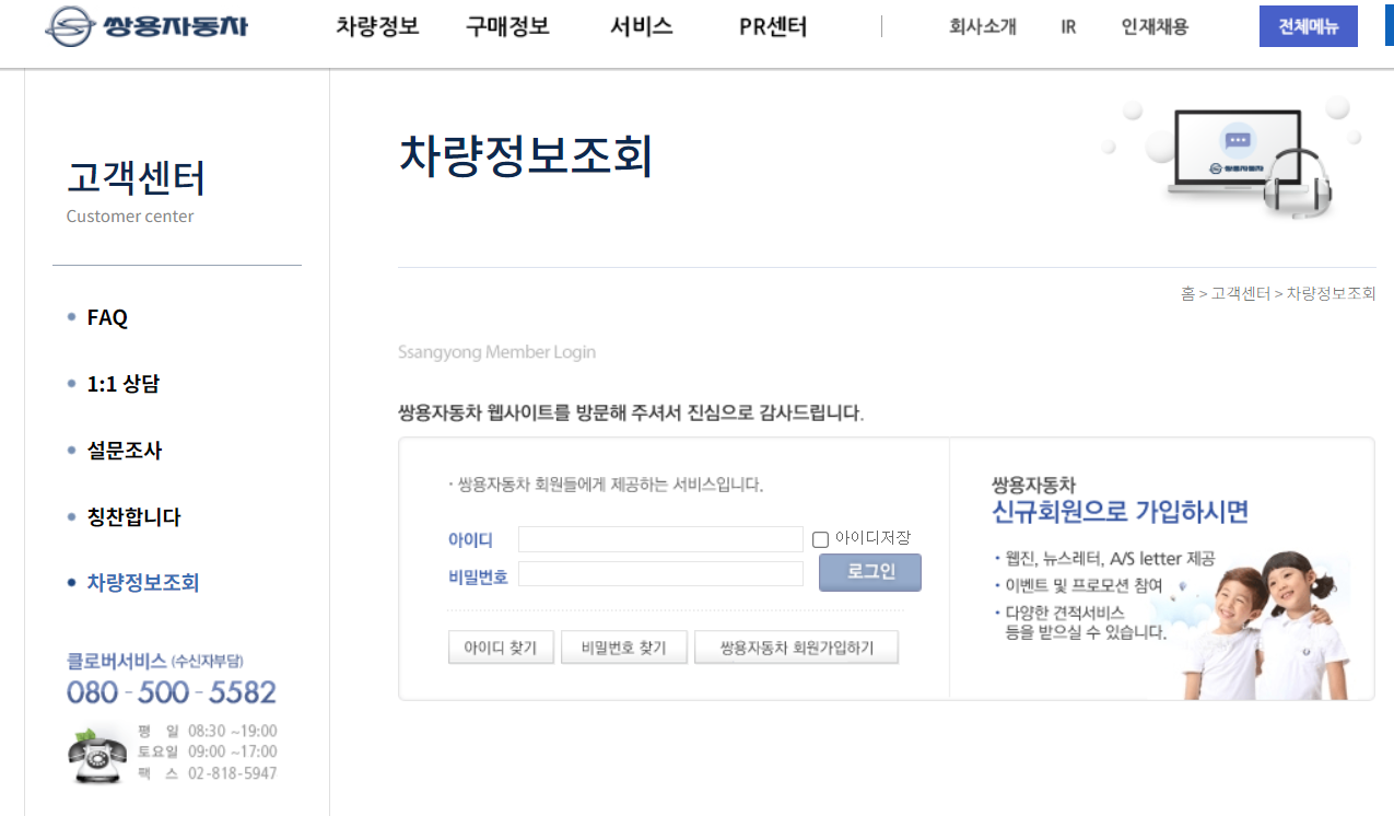 - 접속, 로그인후 고객센터 -> 차량정보조회 클릭